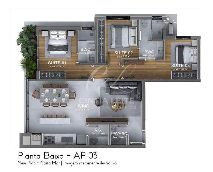 3 dormitórios (3 suítes)